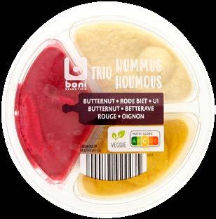 210 g vb.: Trio hummus Butternut-Rode biet-Ui 8,97 5,98/3 verpakkingen ( 9,49/kg)