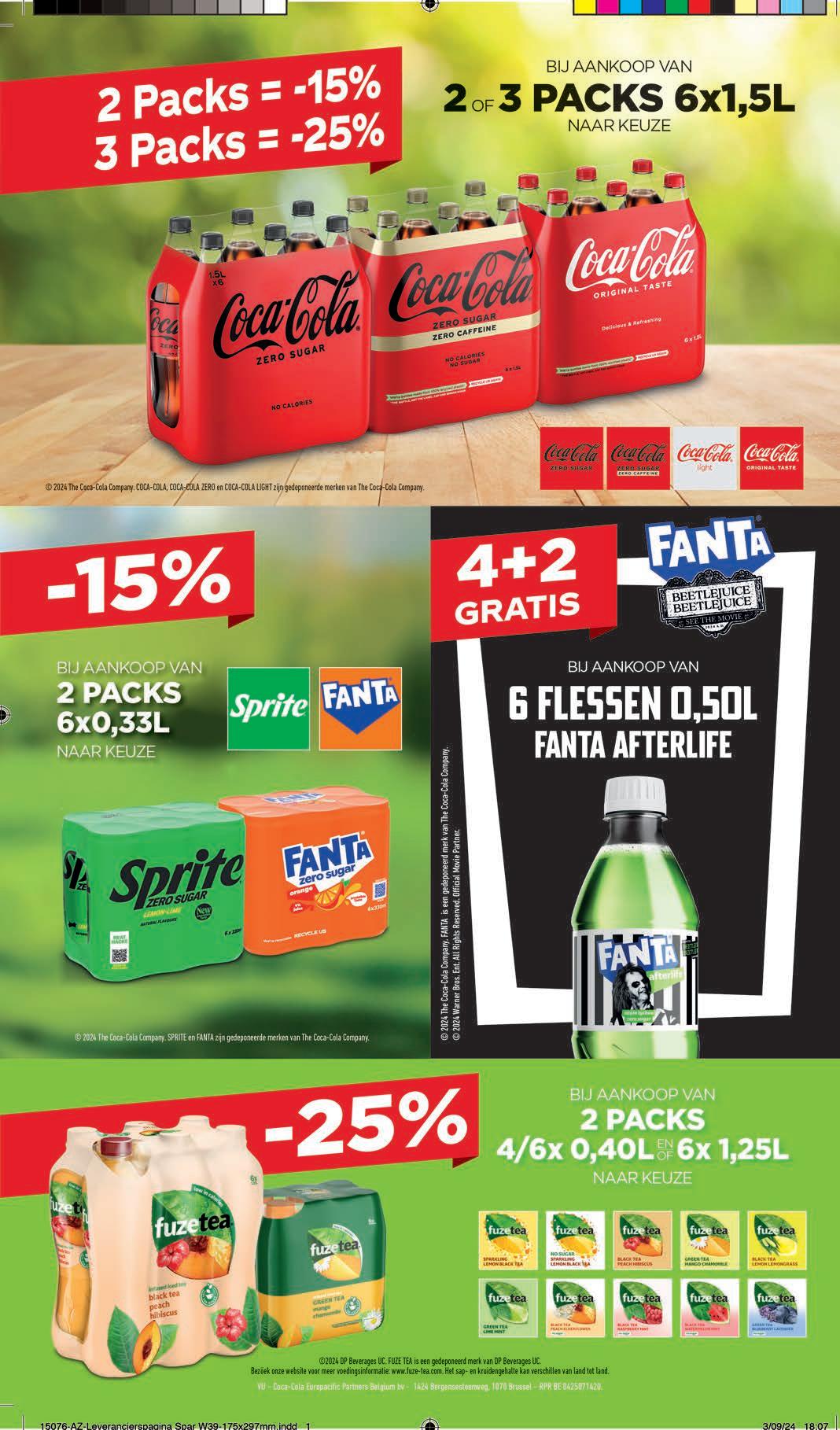 Verantwoordelijke uitgever: zie hieronder. Behoudens drukfouten of uitputting voorraad. Het aanbod kan verschillen naargelang het gevolgde assortiment. Prijzen BTW inbegrepen. Ons vakmanschap drink je met verstand. De aangeduide prijzen op deze folder houden rekening met de promotieaanbiedingen. Opmaak folder 04/09/2024.