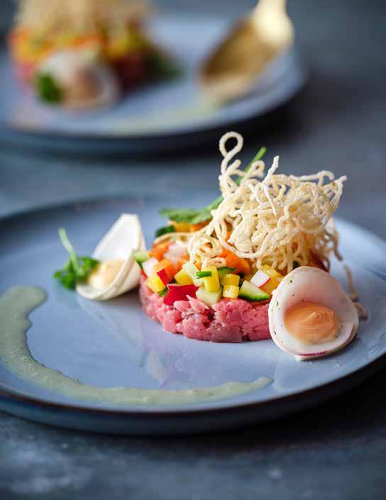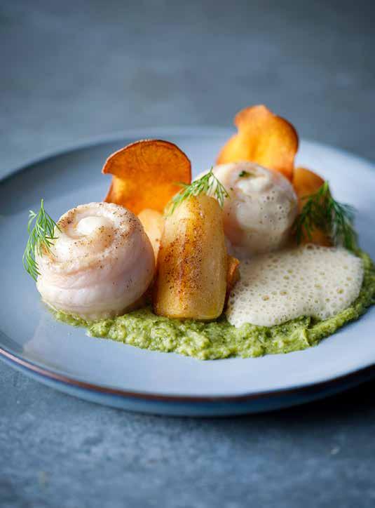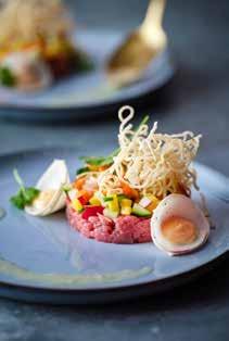 VOORGERECHT 23 Tostadas met gefrituurde bloemkool, tahin, yoghurt en kruidenolie 29 Knolselderpuree met gebakken bospaddenstoelen 41 Ceviche van sint-jakobsvruchten met groene appel en koriander 47 Nage van kreeft met groentejulienne 56 Ravioli met zalm belle-vue, ricotta en limoncellosaus 71 Rundstartaar met Thaise dressing en sambalmayonaise 80 Crumble van foie gras met peer en peperkoek
