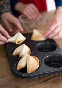 9. Zet de gelukskoekjes in een muffinvorm en laat ze hierin verder afkoelen.