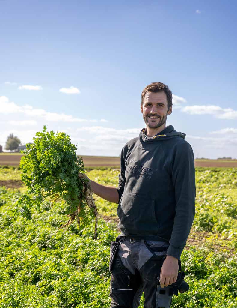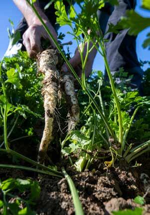 Alexandre: “Twintig jaar geleden is mijn vader begonnen met het telen van pompoe nen. In die tijd was dat nog een vergeten groente. Vandaag telen mijn broer en ik heel wat vergeten groenten, waarvan de peter seliewortel op 4 ha. Je kan dus zeggen dat we die voorliefde voor vergeten groenten hebben overgekregen.”
