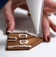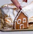 4. Royal icing: zeef de bloemsuiker in een kom. Meng in de keukenrobot met het citroensap en het eiwit tot een dikke stroopachtige vloeistof die glanst. Doe de royal icing in een spuitzak en spuit randen, deuren en ramen op de verschil lende koekjes.