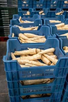Half september zijn de peterseliewortels klaar om geoogst te worden. Pastinaak PeterseliewortelNa een grondige wasbeurt, worden ze machinaal ingepakt.