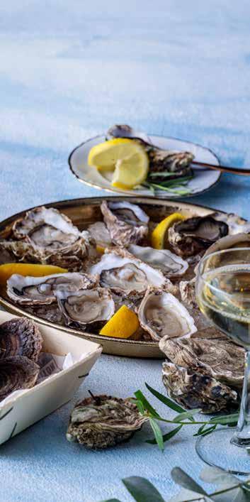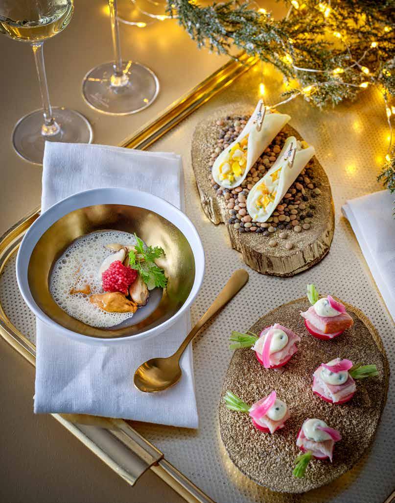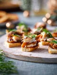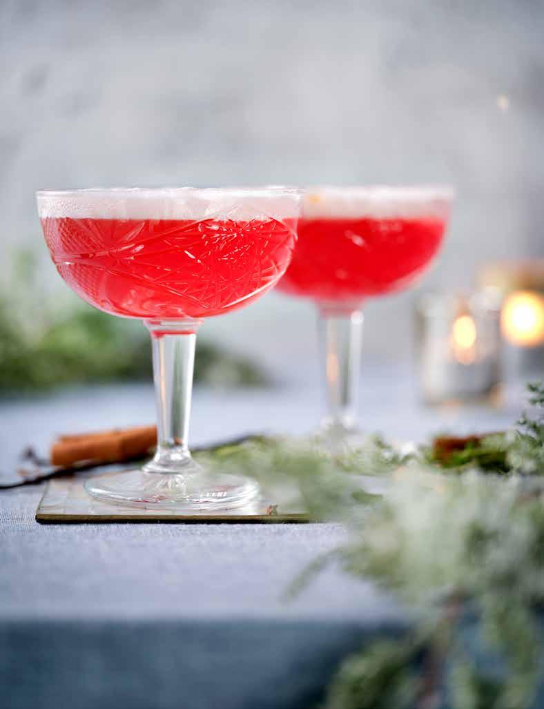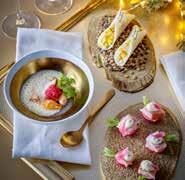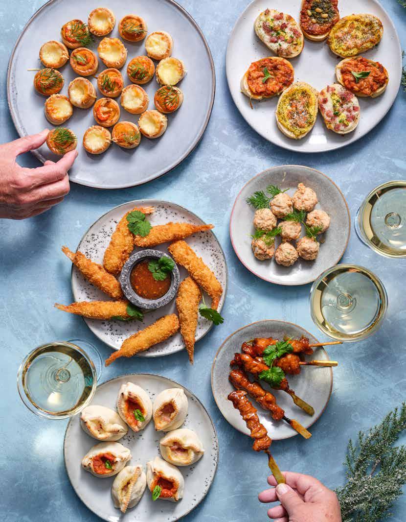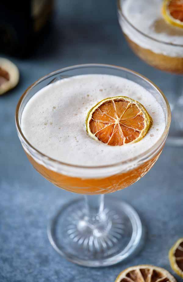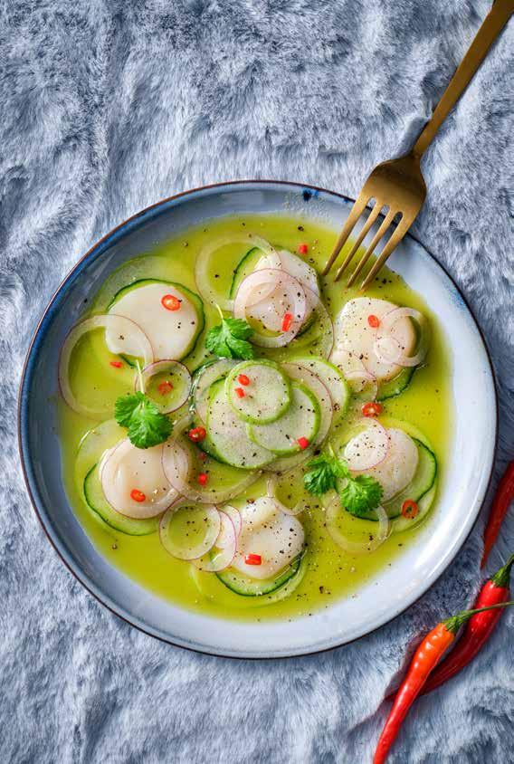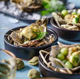 27 Toastjes met dadelspread en gerookte makreel 35 Tempura van oester met wasabinootjes en limoenmayonaise met komkommerbolletjes 39 Gimbermojito 40 Krokante scampi’s met Vietnamese knapperige salade 45 Campari fizz 46 Bladerdeegrol met zoete aardappel, kokos en dadels 53 Berry fizz 53 Nona apple spritz 55 Mosselen met beurre blanc-schuim 55 Koolrabi met brunoise van wintergroenten 55 Radijsje met gerookte forel, dragonmayonaise en rode ui 57 Trou Normand 70 Amaretto sour