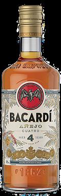 Bacardi rum 4Y (40%, 70 cl) heeft vier jaar lang mogen rijpen onder de Caribische zon. Dat rijpingsproces voegt complexiteit toe aan de smaak en het mondgevoel, met tonen van zachte eik. Het is de geschikte partner voor klassieke cocktails.