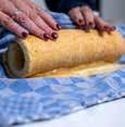 8. Siroop: meng de suikerrietsiroop met het citroensap. Besprenkel de biscuit met deze suikersiroop en verdeel de lemon curd erover. Meng de granaatappelpitten door de resterende curd en spuit in het midden van de rol. Rol de biscuit stevig op en pak in met plasticfolie. Zet in de koelkast.