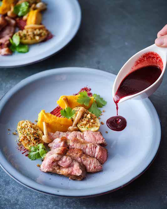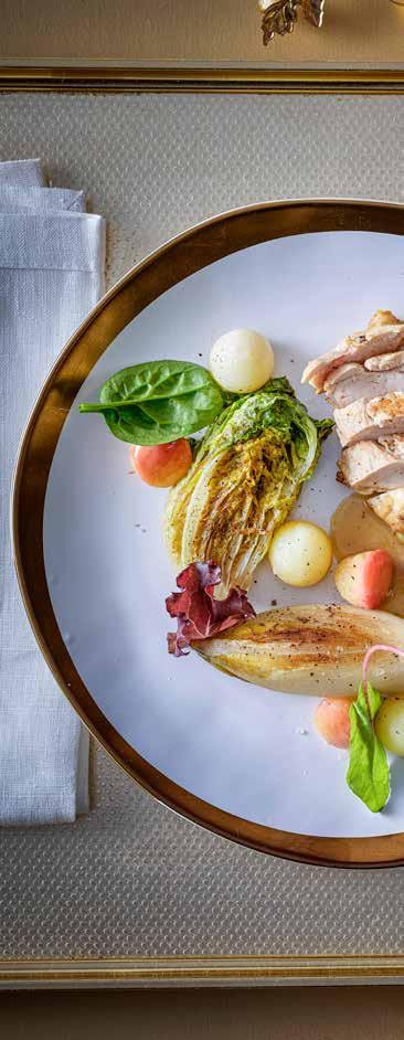 19 3x peterseliewortel 30 Tajine van kruidige kip met witlof en citroen 42 Perzische fesenjan met eendenborst 48 Rosbiefrollade met kastanjes en champignons, pommes duchesse, boontjes in spek, witlof en rodewijnsaus 58 Parelhoen met honingmosterdsaus, witlof, gekonfijte aardappel en gegrilde slaharten 66 Veggie Wellington met cognacsaus en zoete aardappelkroketten 67 Beef Wellington met rodewijnsaus en truffelkroketten 72 Tongrolletjes met crème van broccoli, witte wijnsaus, peterseliewortel en chips van zoete aardappel 75 Spiering met pompoencrème, saus van rode biet en appel, beukenzwam en gepofte krieltjes