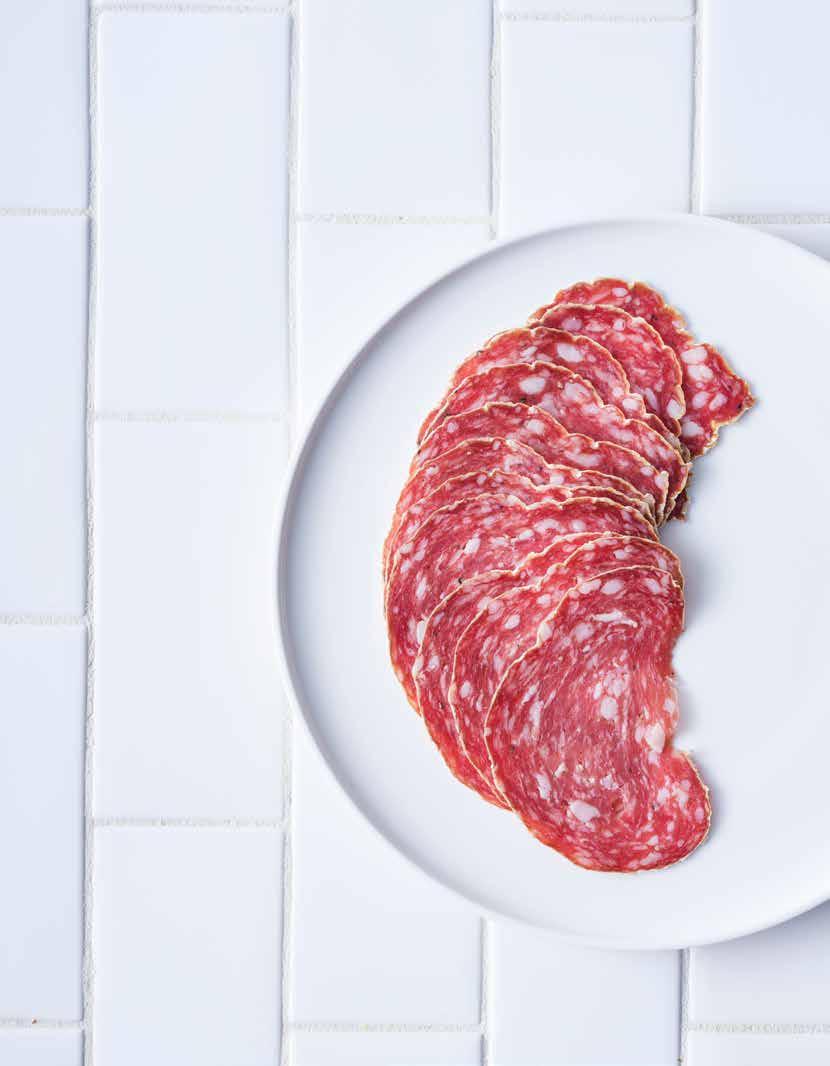 Spianata piccante is een licht pikante Italiaanse salami met middelgrove korrel.