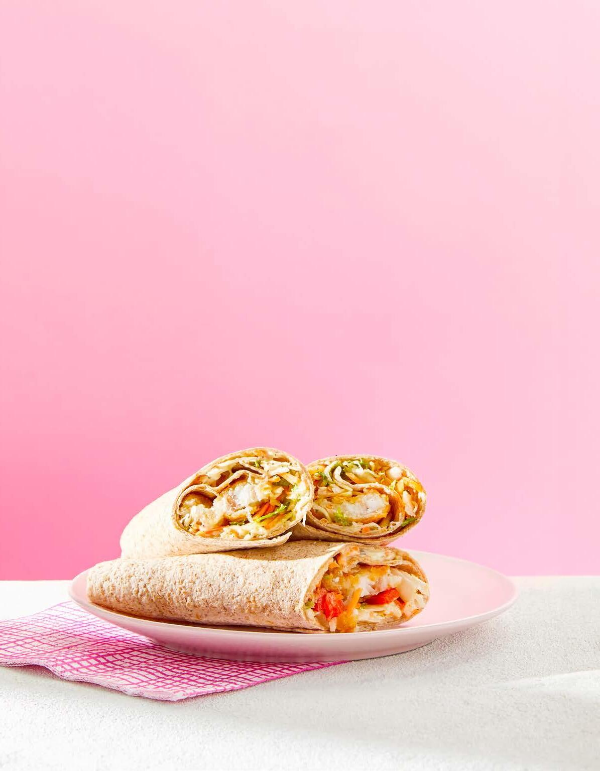 Plooi de onderkant van de wrap omhoog en rol strak op. Zet vast met een prikker.