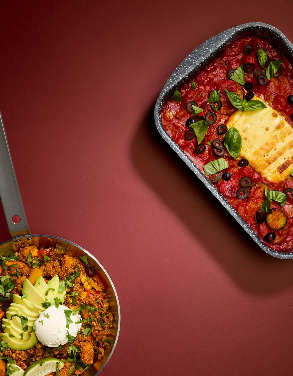 Parfois, vous voulez simplement avoir vite fini. Sans vous compliquer la vie ni avoir une montagne de vaisselle. Placez tout dans une casserole, une poêle ou un plat au four. L’idéal pour les journées chargées ou quand vous restez un peu trop longtemps dans le canapé.