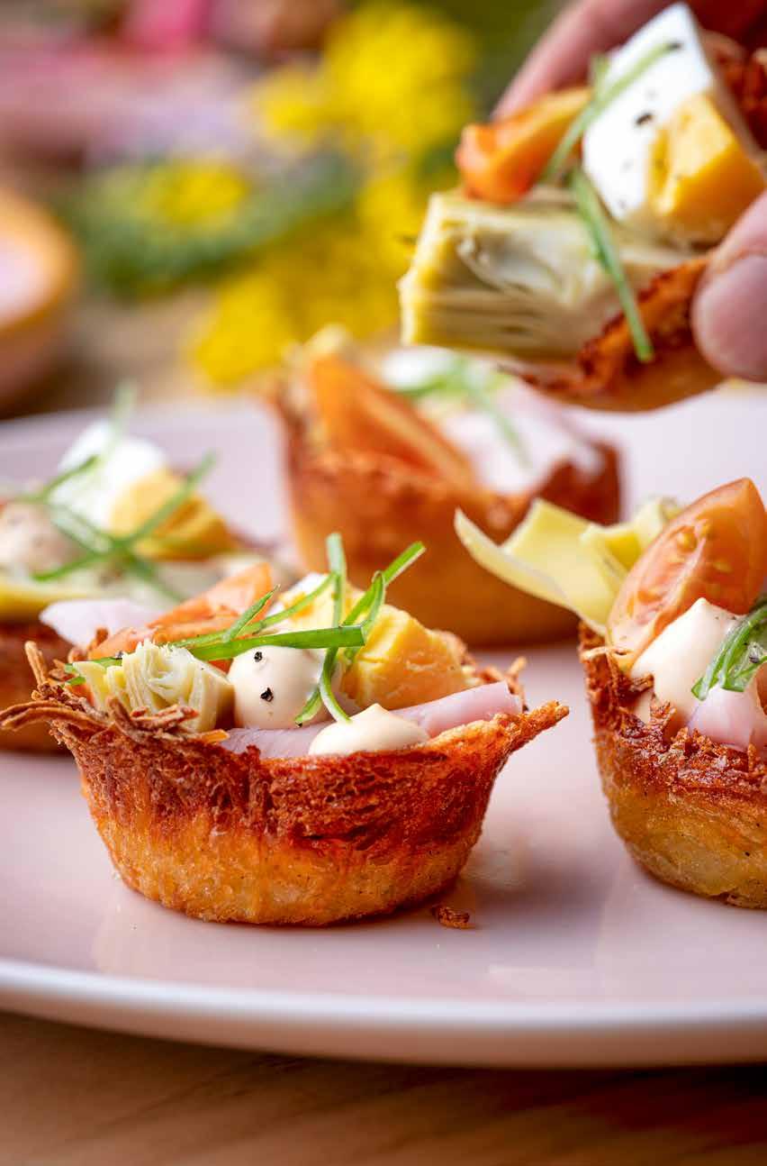 24 Aardappelnestjes met artisjok, ei, ham, lente-ui en mayonaise