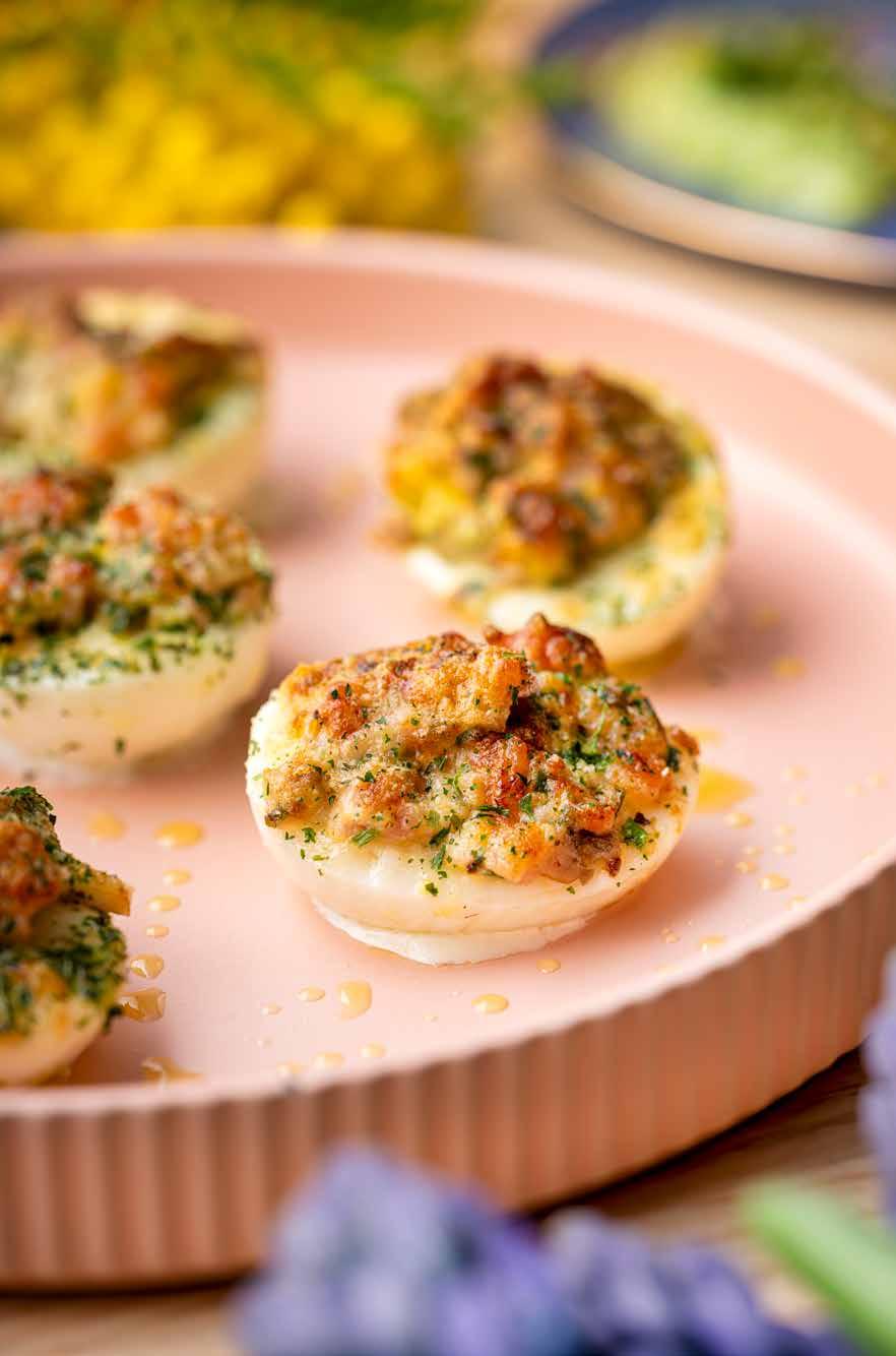 27 Gegratineerde gevulde eitjes met champignon, ham en Parmezaanse kaas