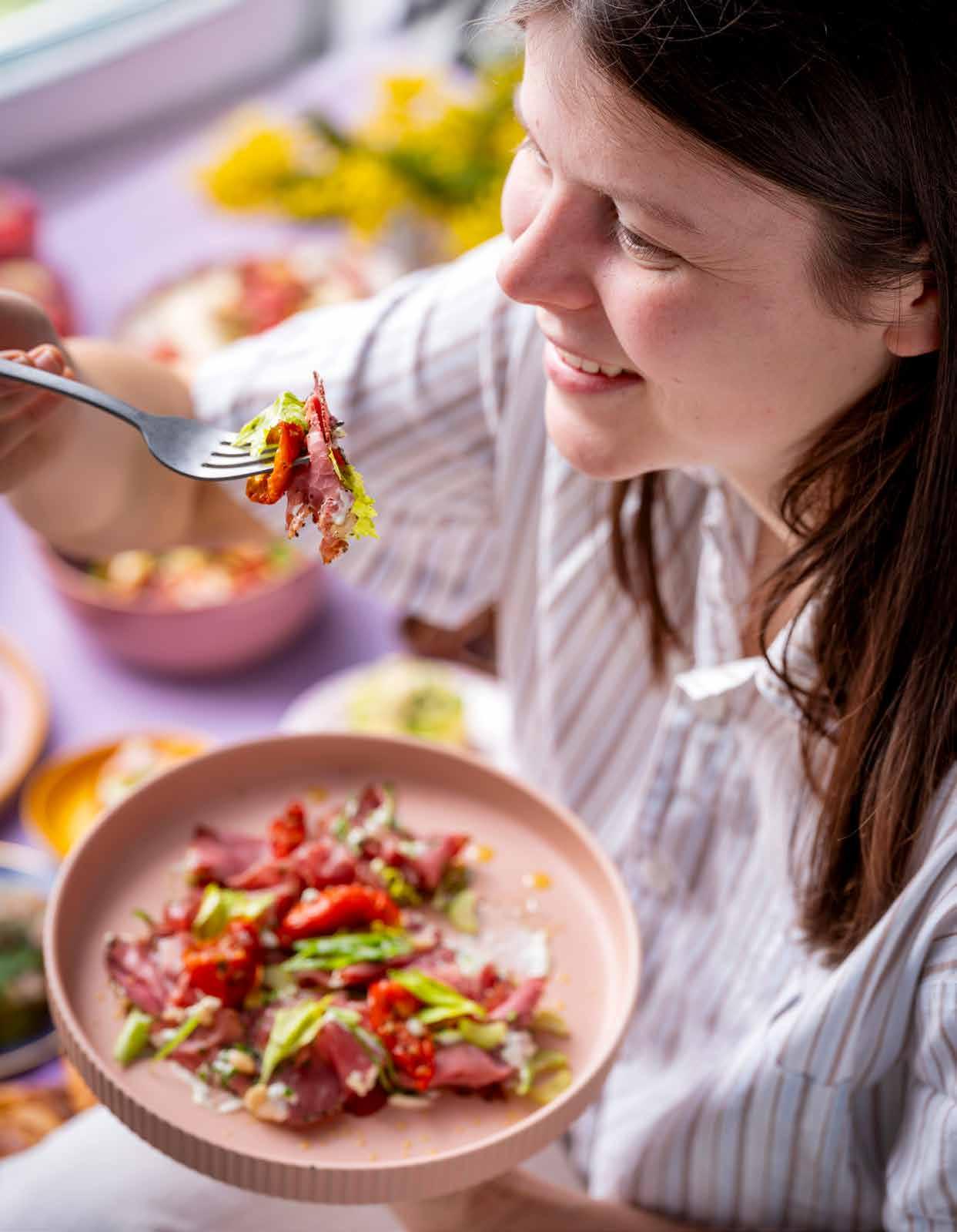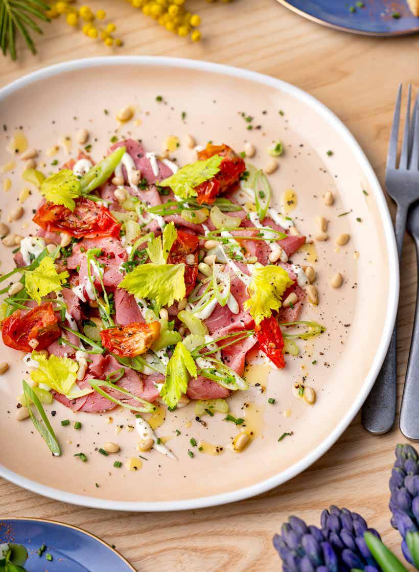 29 Pastrami met salade van zongedroogde tomaat, pijnboompitten en selder