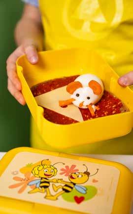 Iza en Jules vullen hun brooddoos van Maya De Bij met een kunstig hapje.