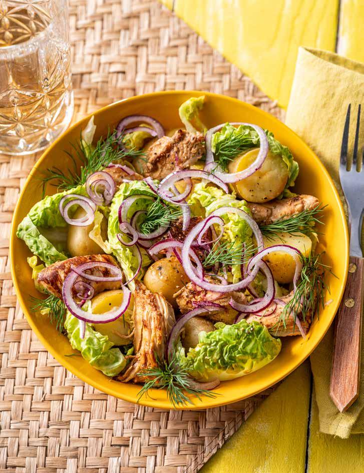 61 Krieltjes met kip en harissa-karnemelkhoningdressing