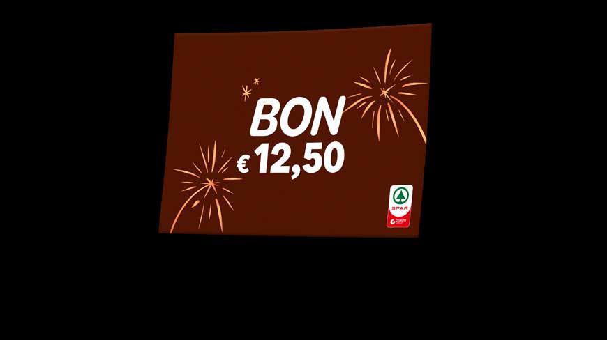 *Non échangeable en espèces. Montant d’achats minimum calculé après déduction de toutes les réductions et excepté les consignes. Valable sur tout l’assortiment, excepté les articles pour fumeurs, cartes-cadeaux, cartes de recharge, journaux, revues, timbres, sacs-poubelles communaux et articles de la Loterie Nationale. Uniquement valable dans les magasins Spar de Colruyt Group. Vous pouvez utiliser 1 bon de valeur par tranche d’achats de € 25. Maximum 20 bons de valeur par Xtra.