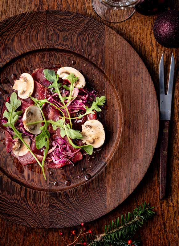 84 Carpaccio de gigot de chevreuil au chou rouge et airelles