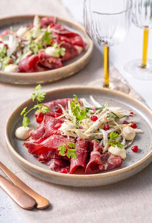 9 Carpaccio fumé, salade de chicons et mayonnaise fraîche
