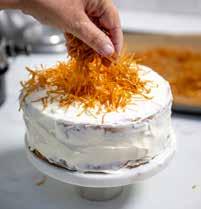1. Gâteau : hachez les pistaches dans le blender pour leur donner la consistance de la poudre d’amandes. Réservez 20 g pour la finition. Transvasez 150 g de pistaches moulues dans un saladier et mélangez avec la farine fermentante, la cannelle et la cardamome en poudre et le sel (= ingrédients secs).