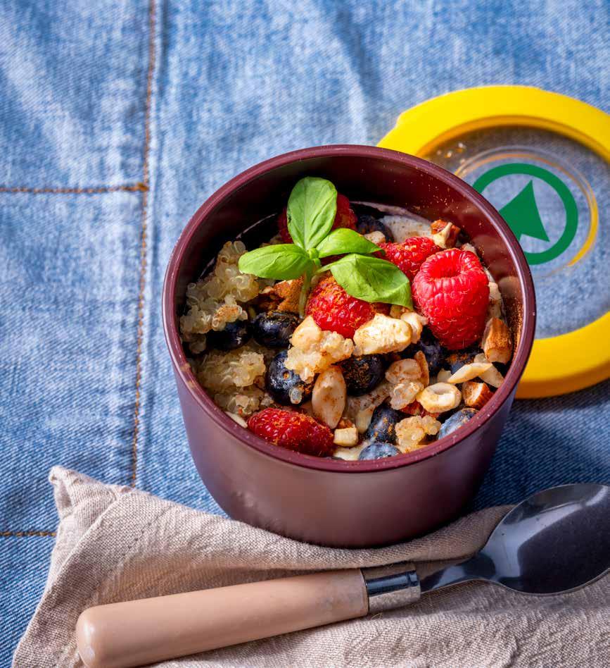 18 Salade froide au quinoa, myrtilles, framboises et yaourt grec