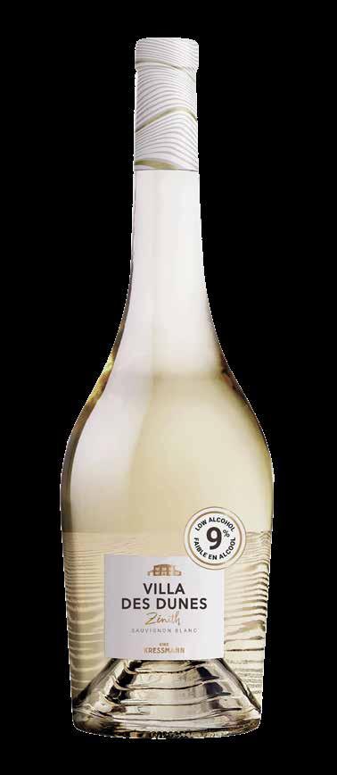 Que diriez-vous d’un vin blanc accessible, qui se laisse boire ? Villa des Dunes Zénith est un bordeaux qui titre seulement 9 % d’alcool. En vendangeant le sauvignon blanc très tôt, le degré d’alcool reste naturellement bas. Mais l’acidité vive et les arômes expressifs – typiques du cépage –sont bien au rendez-vous. Parfait avec les poissons, volailles et salades, ou à l’apéritif.
