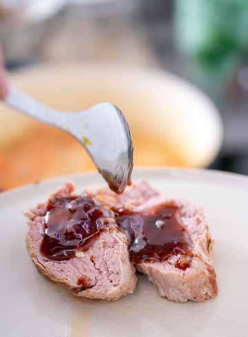 63 Moelleux de porc au balsamique à la fraise, princesses et croquettes de patate douce