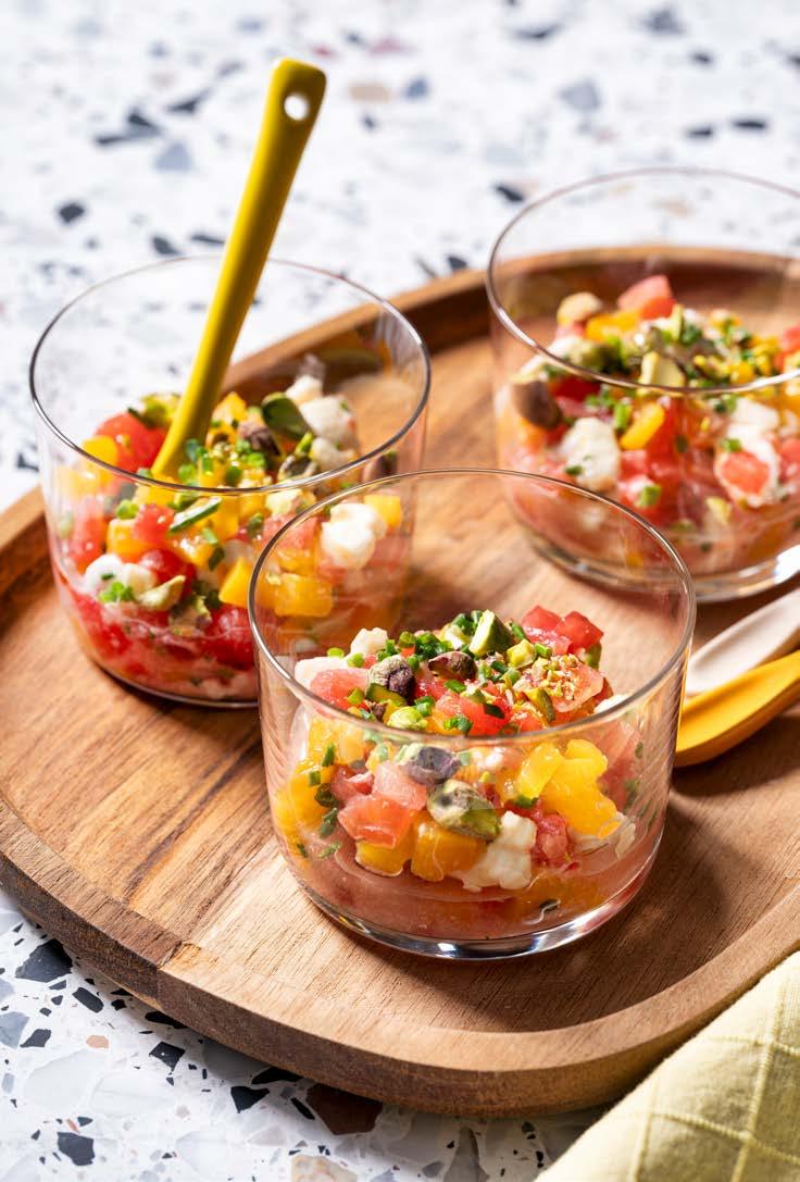 13 Tartare d’abricot, pastèque et fromage de chèvre