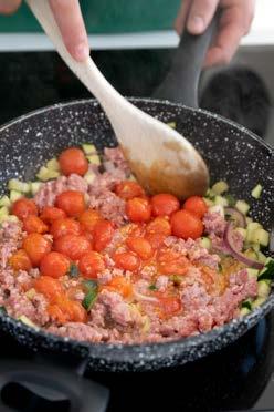 94 Pâtes à la saucisse au fenouil, courgette et tomates