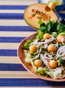 96 Salade thaïe au haché de poulet, melon et nouilles de riz