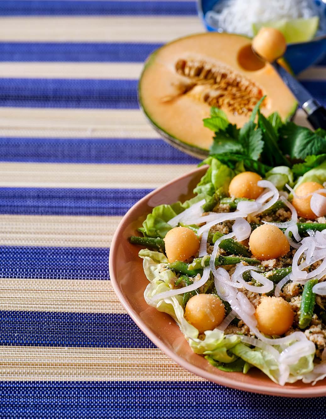 Un petit bout de melon qui traîne ? Pas de souci ! Préparez notre salade thaïe facile au haché de poulet.