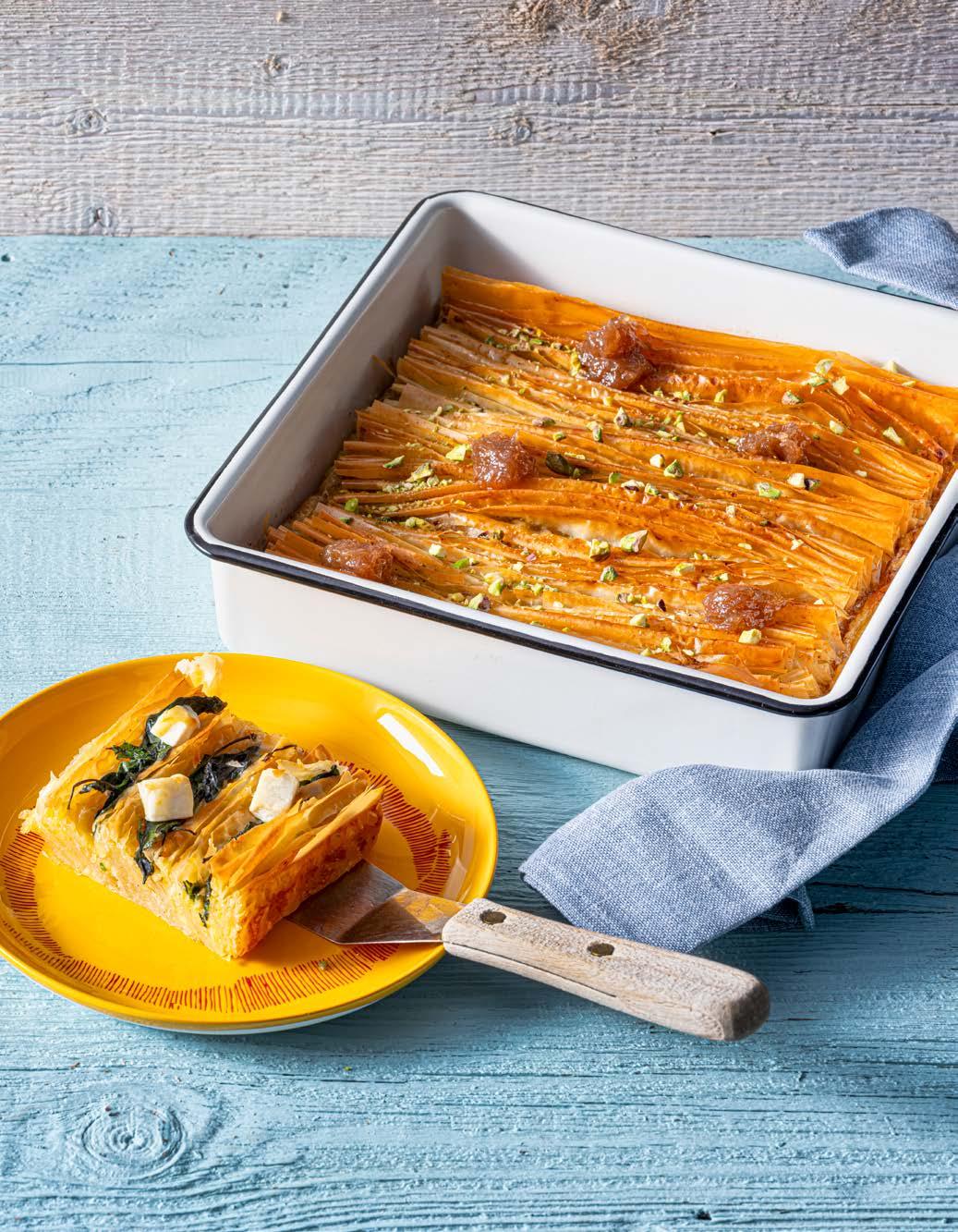 Connaissez-vous déjà le crinkle cake ? Entre les couches chiffonnées de pâte filo, une farce onctueuse fournit le mix parfait de textures et de saveurs. Cette recette d’origine moyen-orientale peut être sucrée ou salée.