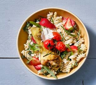 57 Salade de pâtes au poulet, fraises et sauce ricotta-estragon