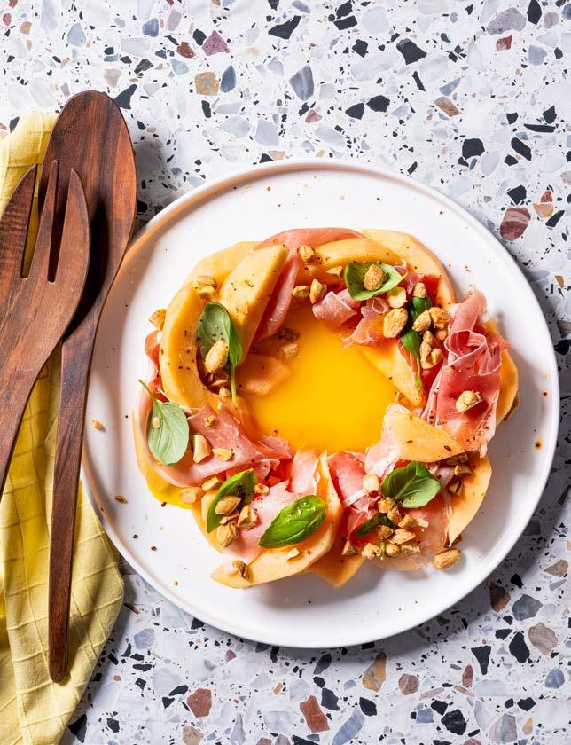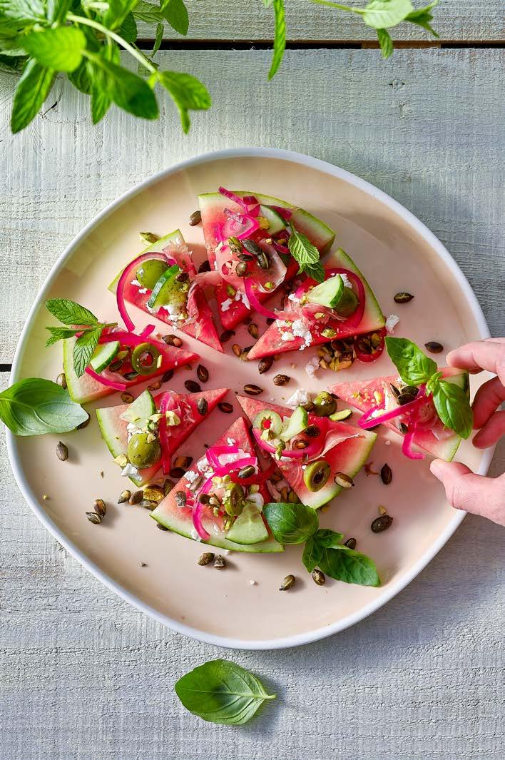 69 Pizza de pastèque à la feta, prosciutto et oignon rouge
