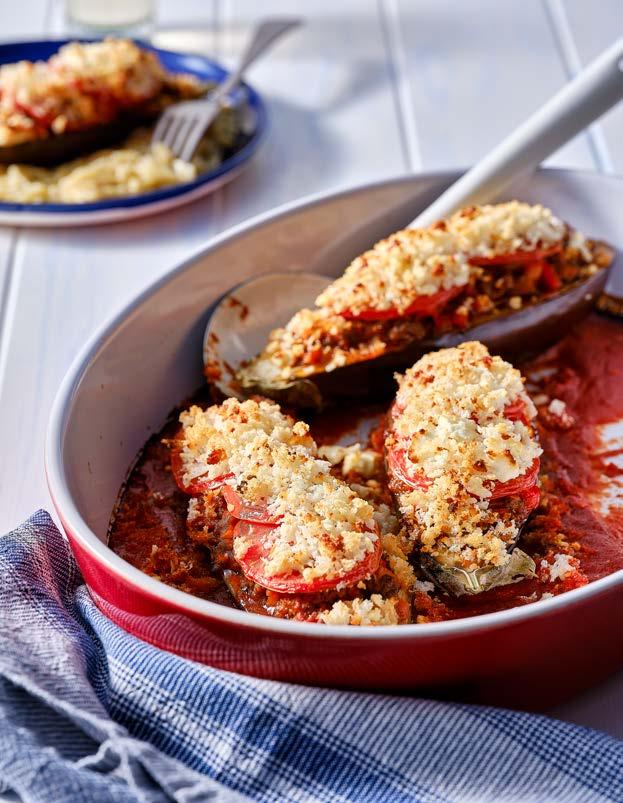 83 Aubergine farcie au haché d’agneau, tomate et feta