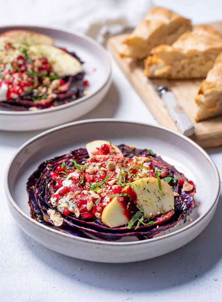 13 Steak de chou rouge au lebné et grenade