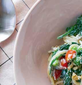 Le magnésium et le potassium jouent un rôle essentiel dans la qualité du sommeil. En e et, le magnésium détend les muscles et stimule la production de mélatonine. Il envoie également un signal aux récepteurs du cerveau qui favorisent l’endormissement. Le potassium veille à un rythme de sommeil stable et prévient les crampes musculaires nocturnes. Ces deux minéraux se trouvent dans les légumes-feuilles, comme les épinards. Ajoutez-y des noix et des petits pois pour plus de protéines, d’oméga 3 et de magnésium. Privilégiez les spaghettis complets et vous obtiendrez des fibres et un taux de sucre stable.
