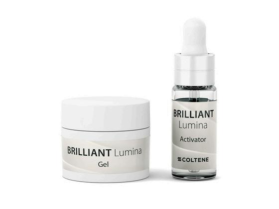 Preț recomandat: 110,00 € per kit BRILLIANT™ Lumina Include materiale pentru o aplicare completă pe arcadă 4–4, cu gel pe bază de PAP