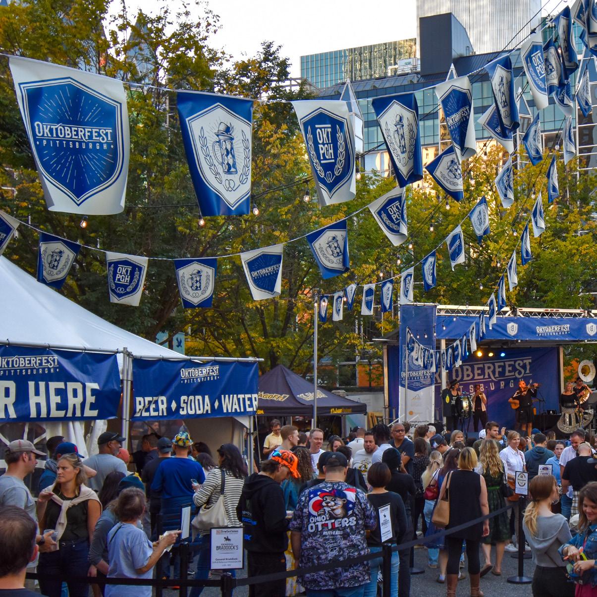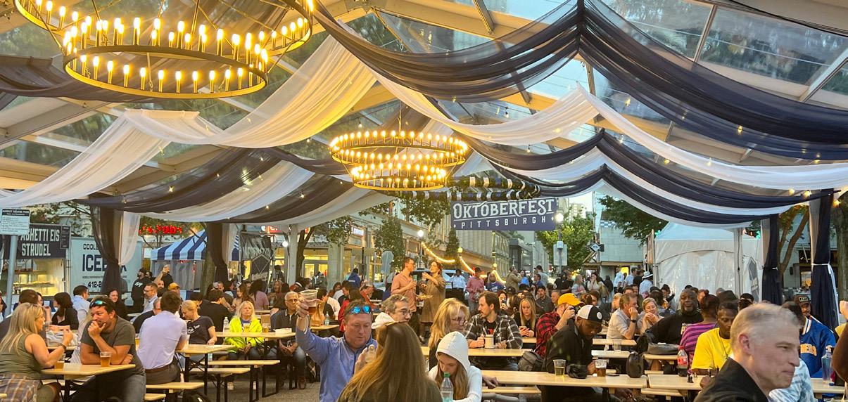 The inaugural Oktoberfest Pittsburgh, running from October 3–13, featured live entertainment, authentic German beer and food and activities for all ages. In partnership with Flyspace Productions, 80,000 attendees flocked to Market Square, with daily crowds averaging around 7,000 and peaking at 17,000 on the first Saturday. Foot traffic in the area jumped by 160% compared to the same time last year. In a Downtown first, and with the support of Riverlife, a Ferris wheel soared over the Roberto Clemente Bridge to attract almost 15,000 riders and help generate activity throughout the Sixth Street corridor.