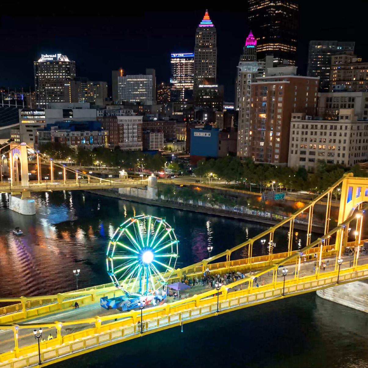Summer saw the return of World Square, an annual celebration of global culture, and the continued growth and success of Picklesburgh. The first-ever Oktoberfest drew visitors for an 11-day event featuring a 60-foot Ferris wheel on the Roberto Clemente Bridge. During the holiday season, the Peoples Gas Holiday Market was enhanced with the addition of BNY’s Black Market and the Merry Marketplace. New and more frequent programming in Market Square with support from BNY and Mellon Square in partnership with Pittsburgh Parks Conservancy offered activities like Paint and Sip classes, trivia nights, bingo, and salsa dancing, giving people even more reasons to visit the Golden Triangle.