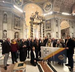 Po lewej: W dniach 5-7 grudnia Rycerze z kilku polskich rad udali się do Watykanu na Ogólnopolską Pielgrzymkę Nadziei wieńczącą Rok Jubileuszowy. Uczestniczyli w niej także Były Delegat Stanowy Marek Ziętek, Skarbnik Stanowy Jacek Pisz oraz koordynator wyjazdu Delegat Rejonowy Tomasz Konturek. Rycerze przeszli m.in. przez Drzwi Święte Bazyliki św. Piotra, gdzie podziwiali baldachim odnowiony dzięki staraniom Zakonu.