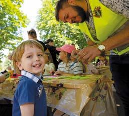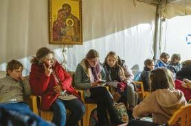 Nazar Bachynskyi z rady 18687 im. patriarchy Josyfa Slipyja w Berezowicy Wielkiej bawi się z chłopcem podczas wydarzenia Kinder Mobile. Rycerze Kolumba współpracują z Zakonem Maltańskim i pomagają ich mobilnym punktom pomocy, które przemierzają całą Ukrainę, by nieść psychologiczne i emocjonalne wsparcie dzieciom mieszkającym w regionach rozdartych wojną.