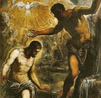 Fragment obrazu włoskiego artysty Jacopo Robustiego (Tintoretto) przedstawiający chrzest Chrystusa w Jordanie. Duch Święty „zstępuje jak gołębica” (Mt 3, 16). Kościół obchodzi święto Chrztu Pańskiego w pierwszą niedzielę po uroczystości Objawienia Pańskiego – w tym roku przypada ono 11 stycznia.