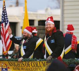 Matt Sennett (po lewej) i Connor Graff z rady 4714 w Forest Hill (Maryland) poprowadzili Rycerzy Kolumba w corocznej paradzie w Bel Air. W wydarzeniu, które przyciągnęło ponad 20 tys. ludzi, wzięli udział także członkowie rady 2002 w Aberdeen. Po paradzie, przy oświetlonej choince w Shamrock Park, Rycerze rozdawali materiały rekrutacyjne.