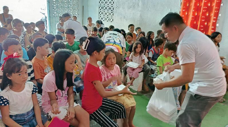 Miembros del Consejo St. John the Baptist 18537 de Camalig, Luzón Sur, distribuyen cajas de alimentos a niños necesitados. El Consejo organizó estas distribuciones durante tres domingos de diciembre a través del programa Alimentos para Familias, que también incluyó oración, juegos y comidas para 50 niños y sus padres.