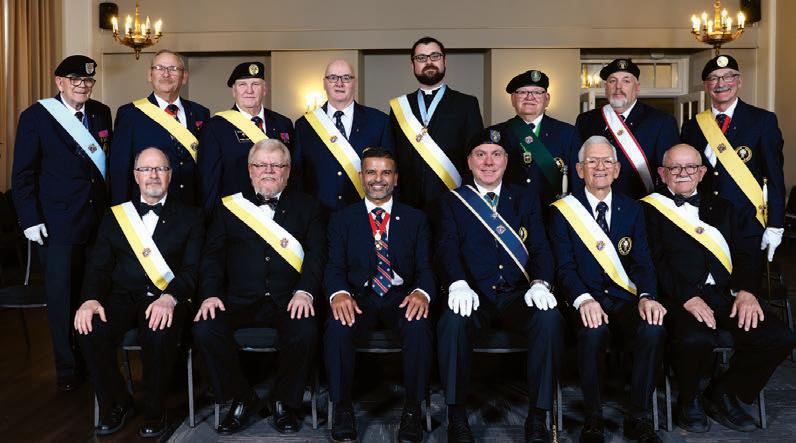 El Maestro Supremo Michael McCusker (al frente, tercero desde la derecha) se une al Diputado de Estado Savio Dias de la Isla del Príncipe Eduardo (al frente, tercero desde la izquierda) y a otros líderes de los Caballeros de Colón tras una ejemplificación del Cuarto Grado en la Convención Estatal de la Isla del Príncipe Eduardo. Casi 30 hombres se convirtieron en Caballeros durante el evento, que siguió el formato ceremonial revisado introducido a principios de este año.