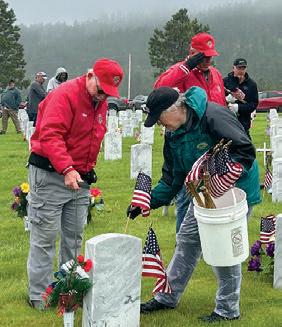 Caballeros de varios Consejos cerca de Rapid City, Dakota del Sur, colocan banderas en las tumbas de veteranos en el Cementerio Nacional de Black Hills. El Consejo St. Therese 8025 ha coordinado el evento durante más de cinco años. Esta es una de las muchas actividades que organizan los consejos a lo largo del año para honrar a los veteranos fallecidos.