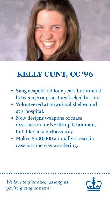 entire time at college,” she reassured panicked onlookers. Tickl had indeed begun writing her freshman year as a guest columnist, and worked her way up to managing after briefly getting lost in the confusing chain of command during sophomore year. “All of my friends are so understanding when I tell them I can’t hang out because I have CPR; they’re like ‘no, no you go,
