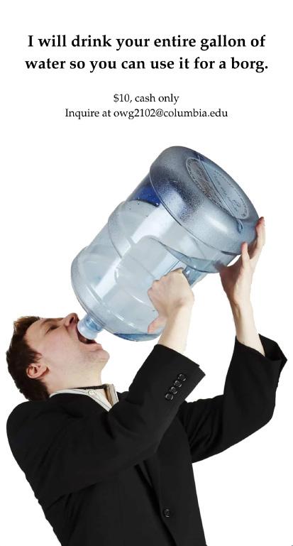 location of University-wide Commencement until about a month ago. Given the Columbia football team’s record, we weren’t expecting any of you to know where the Robert K. Kraft Field was located, so really, we expected that moving Barnard Commencement would be doing you all a favor to familiarize yourselves with the area. Now we’ve heard that the University has moved Commencement back to Morningside campus due to all of your complaining. Unfortunately, we’re now locked into contractual agreements, and, frankly, Barnard College cannot afford paying legal bills.