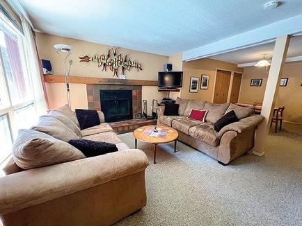 Fully furnished 1br. property is a corner unit with extra large deck to enjoy. It faces up hill towards the ski runs. Sofa, Stuffed Chair and carpet have all been replaced in the last few years. Enjoy a morning java at Mtn. Outfitters on the main floor and walk around the corner to the ski lifts, restaurants and shops in the Upper Village at Panorama. No GS