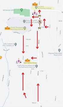 In recent weeks the project got to the point at which 15th Street was com pletely closed to traffic, effectively sealing off all routes south out of Invermere except for 15th Avenue. This is the same bottleneck situation created by phase one last year, with all traffic heading into or out of the south end of Inver mere now funnelled right past Eileen Madson Primary School (EMP), David Thompson Secondary School (DTSS), and J.A. Laird Elementary School.